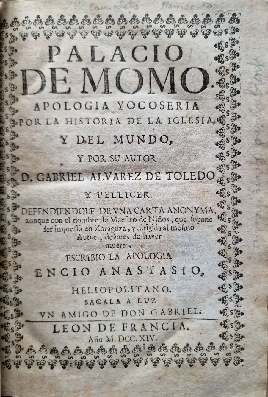 Título: Palacio de Momo apologia yocoseria por la Historia de la Iglesia, y del mundo, y por su autor D. Gab...