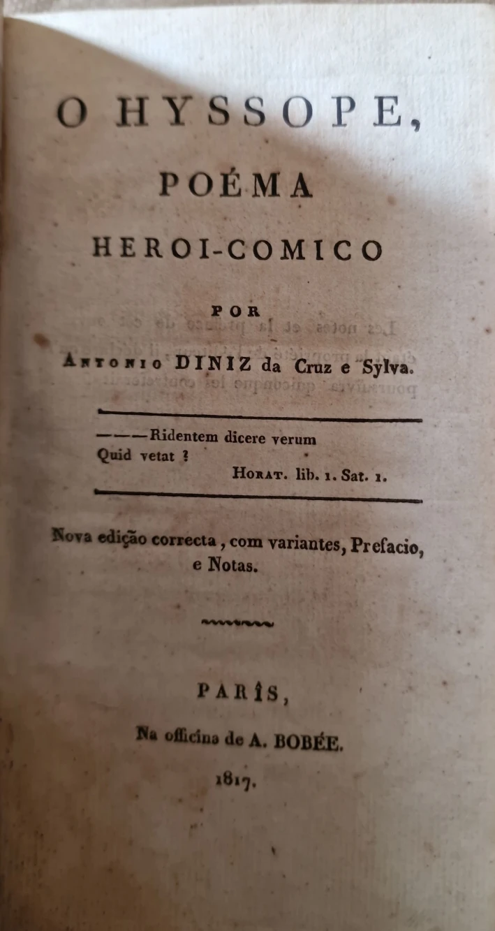 Portada libro : O Hyssope, poéma Heroi-Comico
