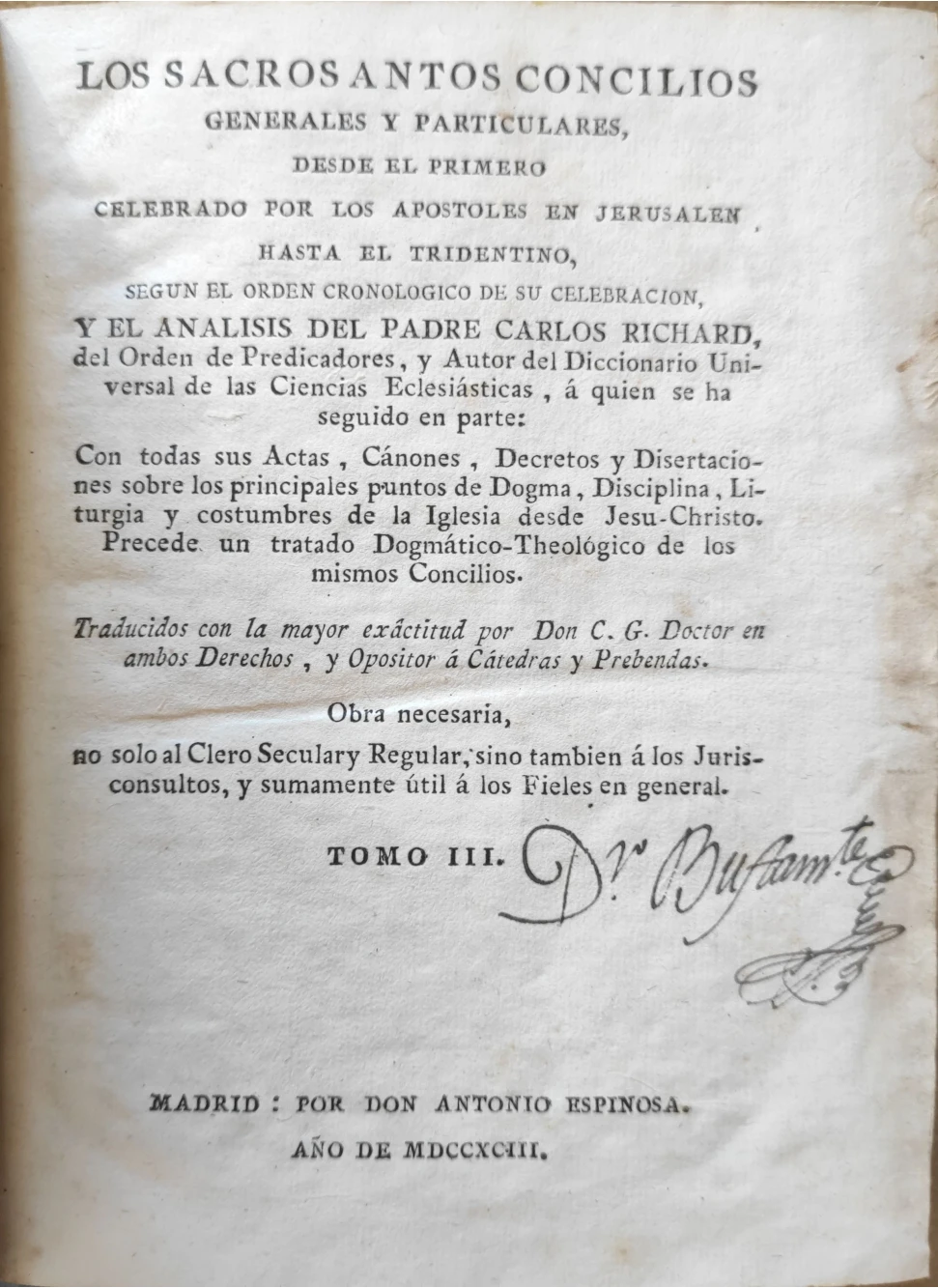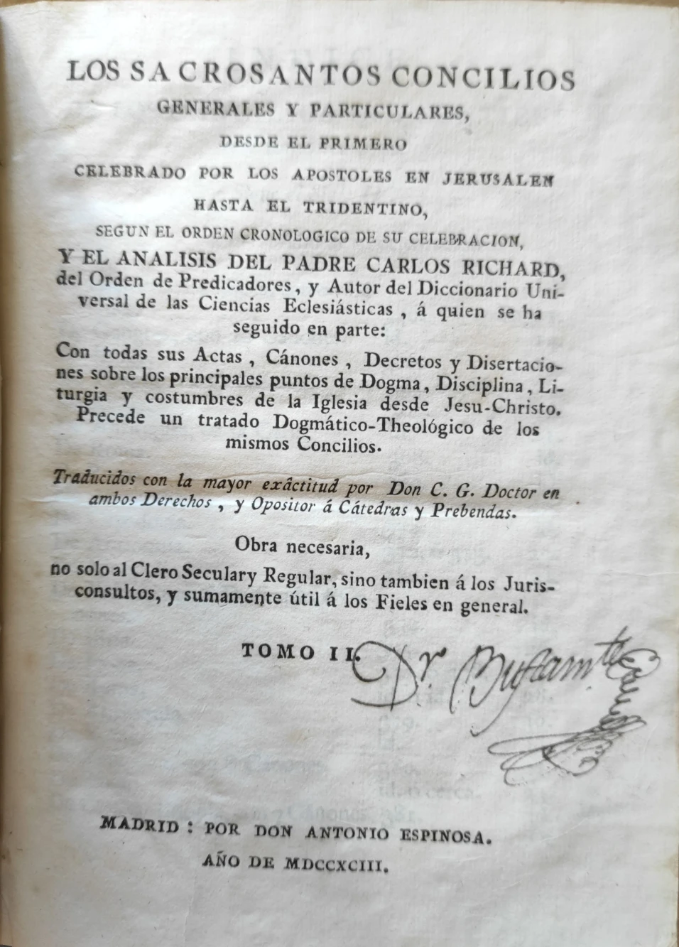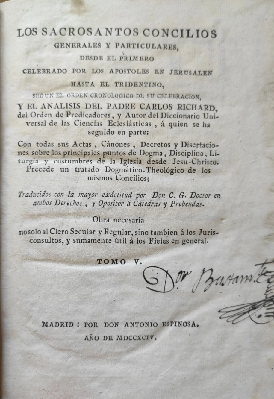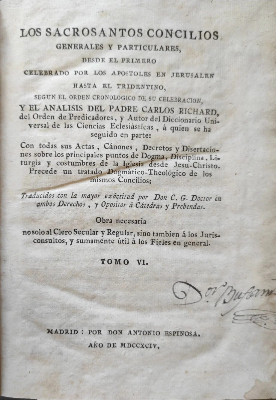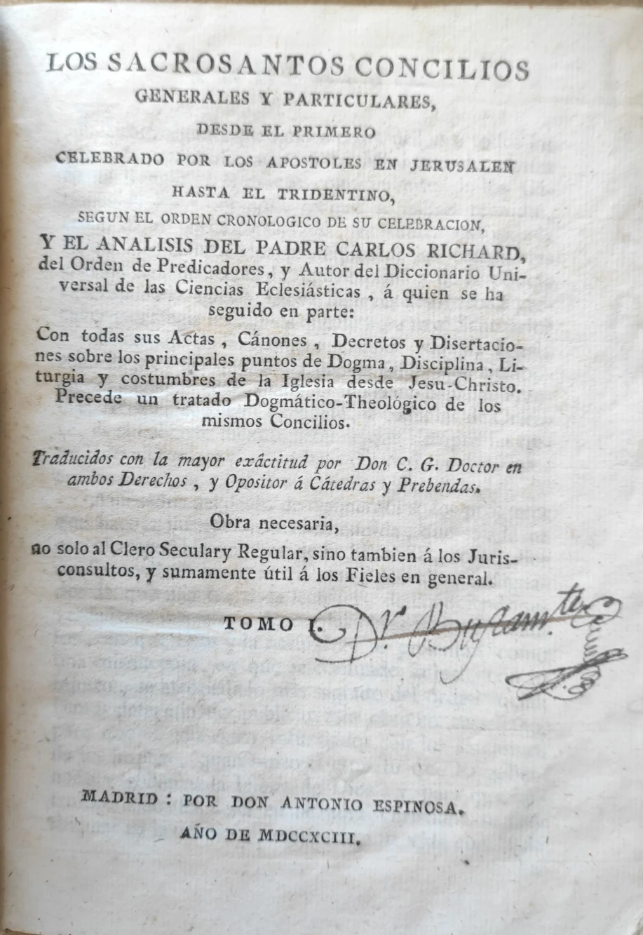 Título: Los Sacrosantos Conciliosgenerales y particulares, desde el primero celebrado por los Apóstoles en J...