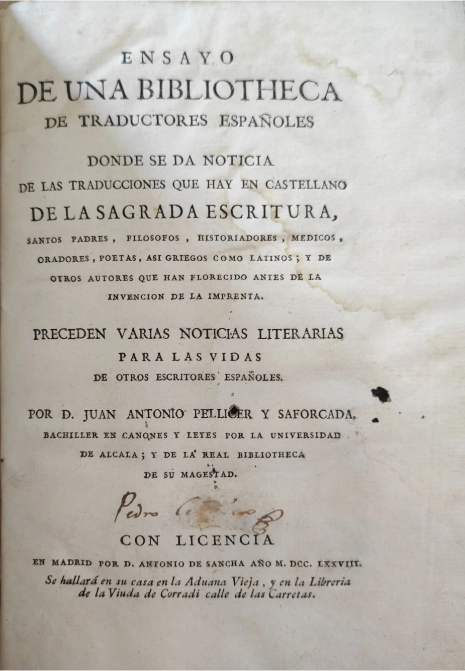 Editorial: en la imprenta de D. Antonio de Sancha