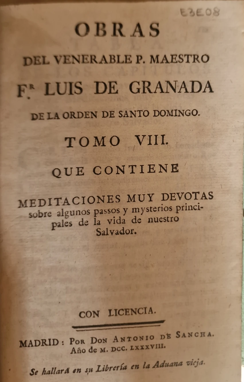 Título: Obras del venerable P. Maestro Fr. Luis de Granada de la Orden de Santo Domingo. Tomo Noveno