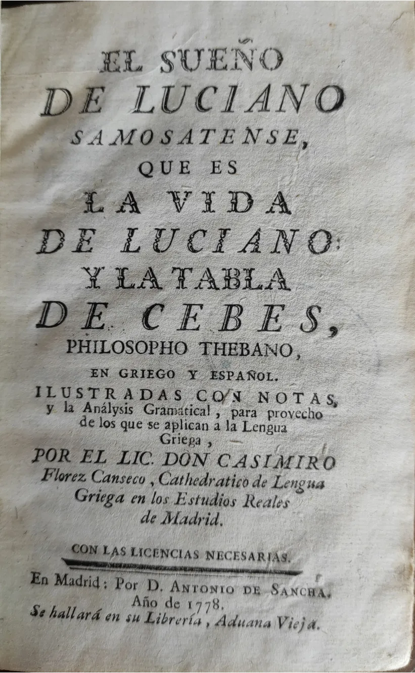 Título: El sueño de Luciano Samosatense, que es la vida de Luciano, y la tabla de Cebes, philosofo thebano, ...