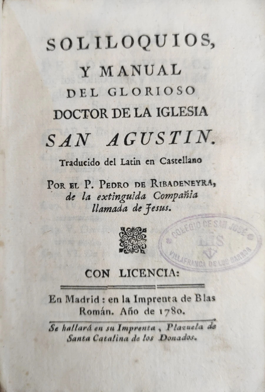 Título: Soliloquios, y manual del glorioso Doctor de la Iglesia San Agustin