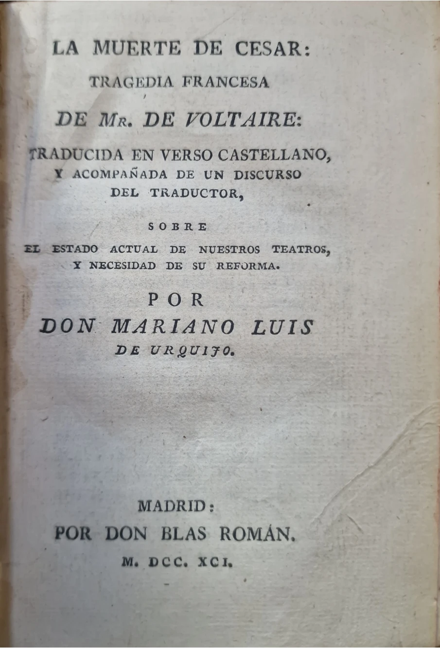 Título: La muerte de Cesar: tragedia francesa de Mr. de Voltaire. Traducida en verso castellano, y acompañad...