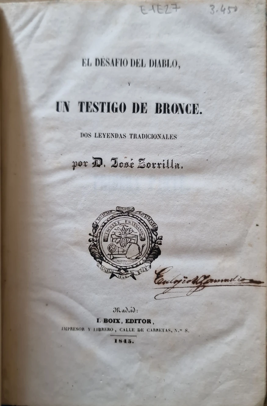 Título: El desafia del diablo, y un testigo de bronce. Dos leyendas tradicionales.