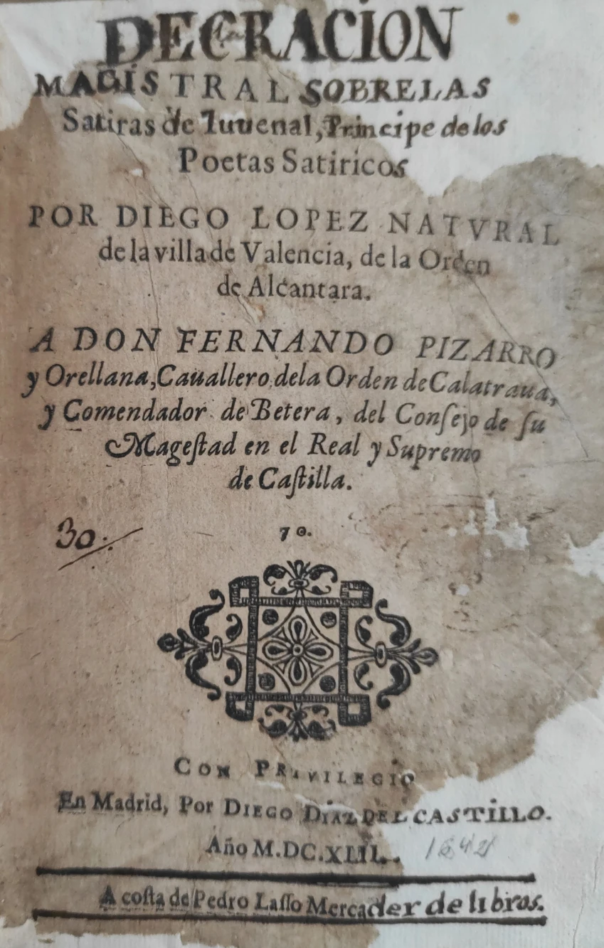 Título: Decracion magistral sobre las satiras de juveal, Principe de los Poetas Satiricos por Diego Lopez Na...