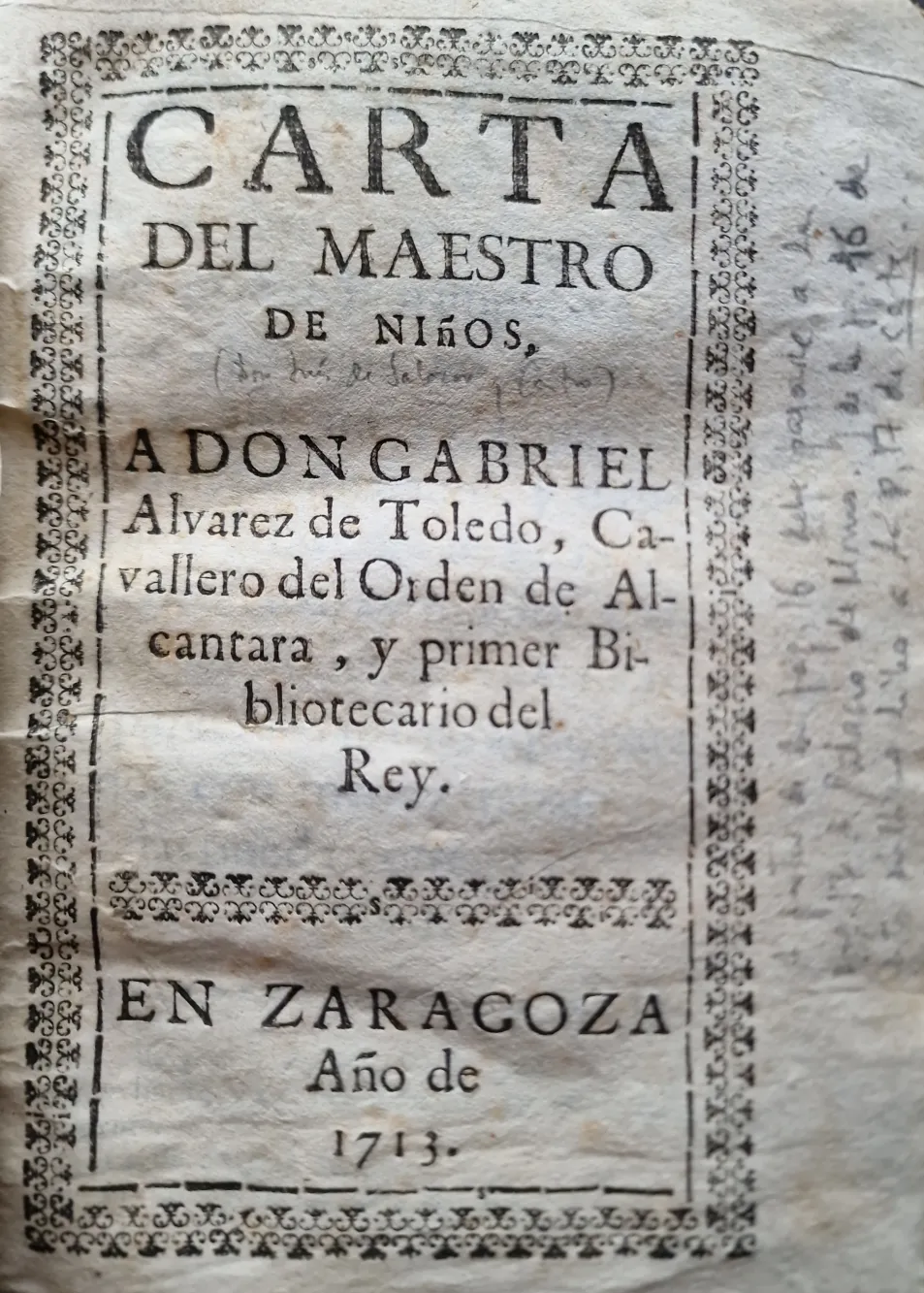 Título: Carta del Maestro de Niños a Don Gabriel Alvarez de Toledo, Cavallero del Orden de Alcantara y prime...