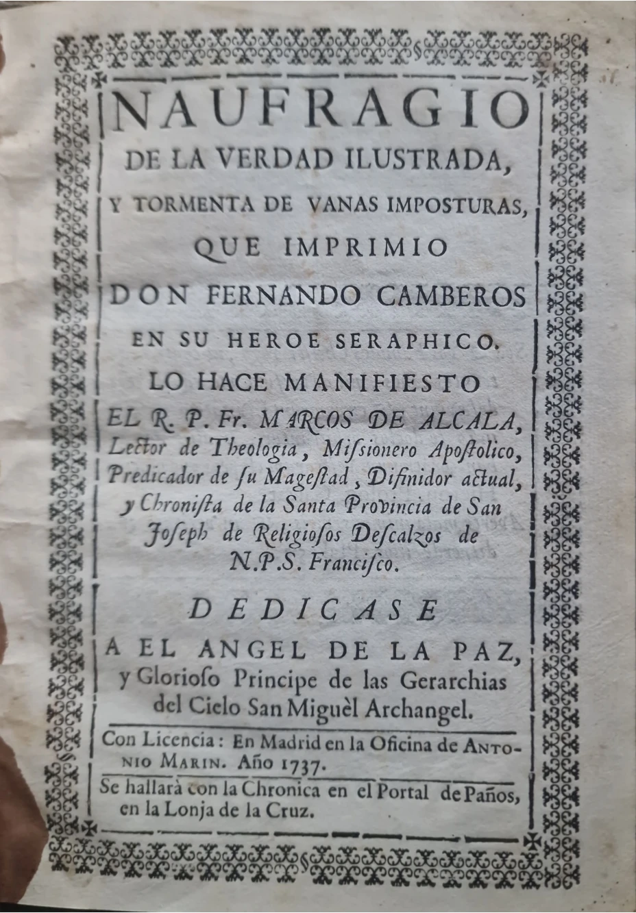 Título: Naufragio de la verdad ilustrada y tormenta de vanas imposturas que imprimio don Fernando Camberos e...