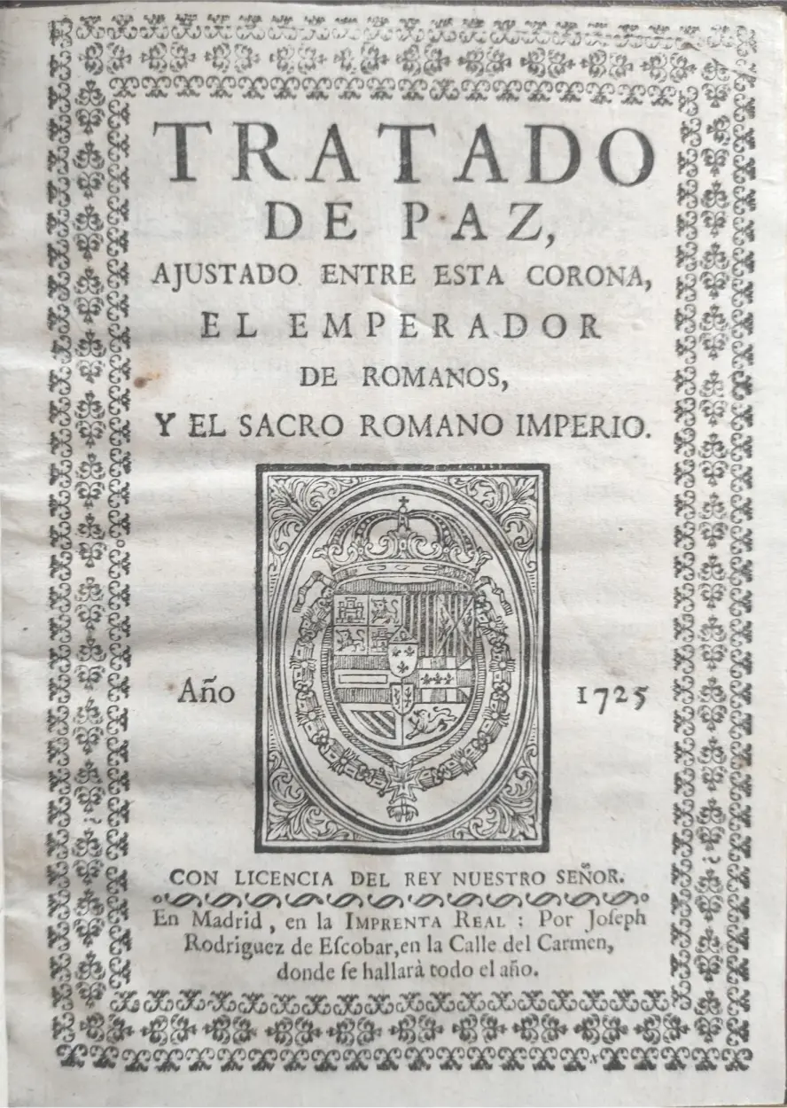 Título: Tratado de paz, ajustado entre esta Corona, el Emperador de Romanos, y el Sacro Romano Imperio, año ...