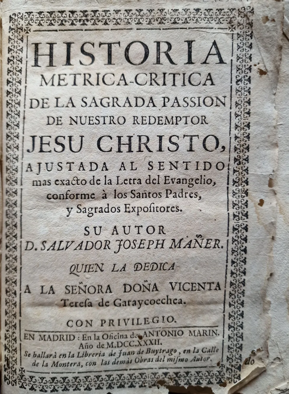 Título: Historia metrica-crítica de la Sagrada Passion de Nuestro Redemptor Jesu Christo, ajustada al sentid...