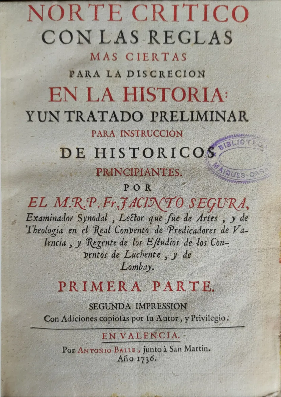 Editorial: en la imprenta de Juan Pablo Martì librero, en la Plaza de San Jayme
