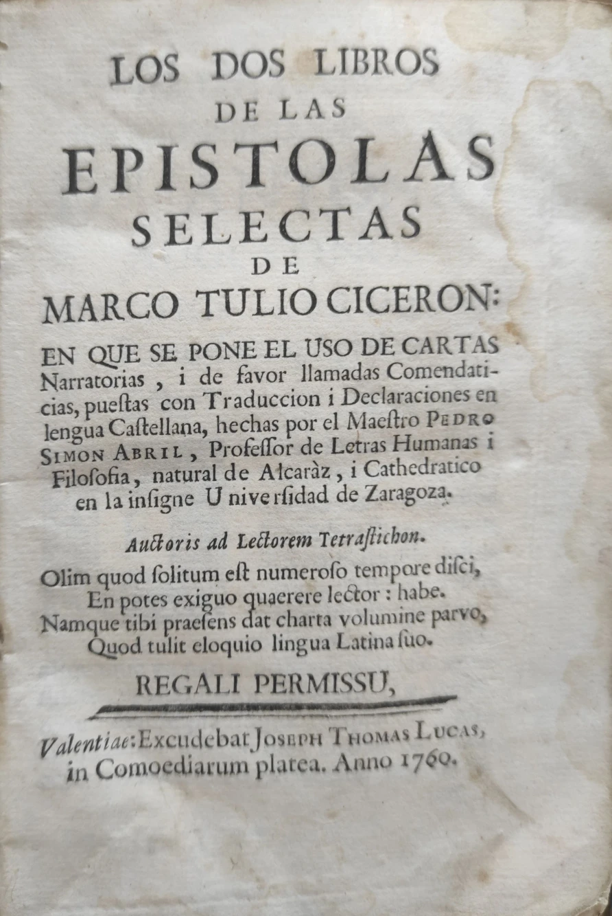 Título: Los dos libros de las Epistolas selectas de Marco Tulio Ciceron en que se pone el uso de cartas narr...