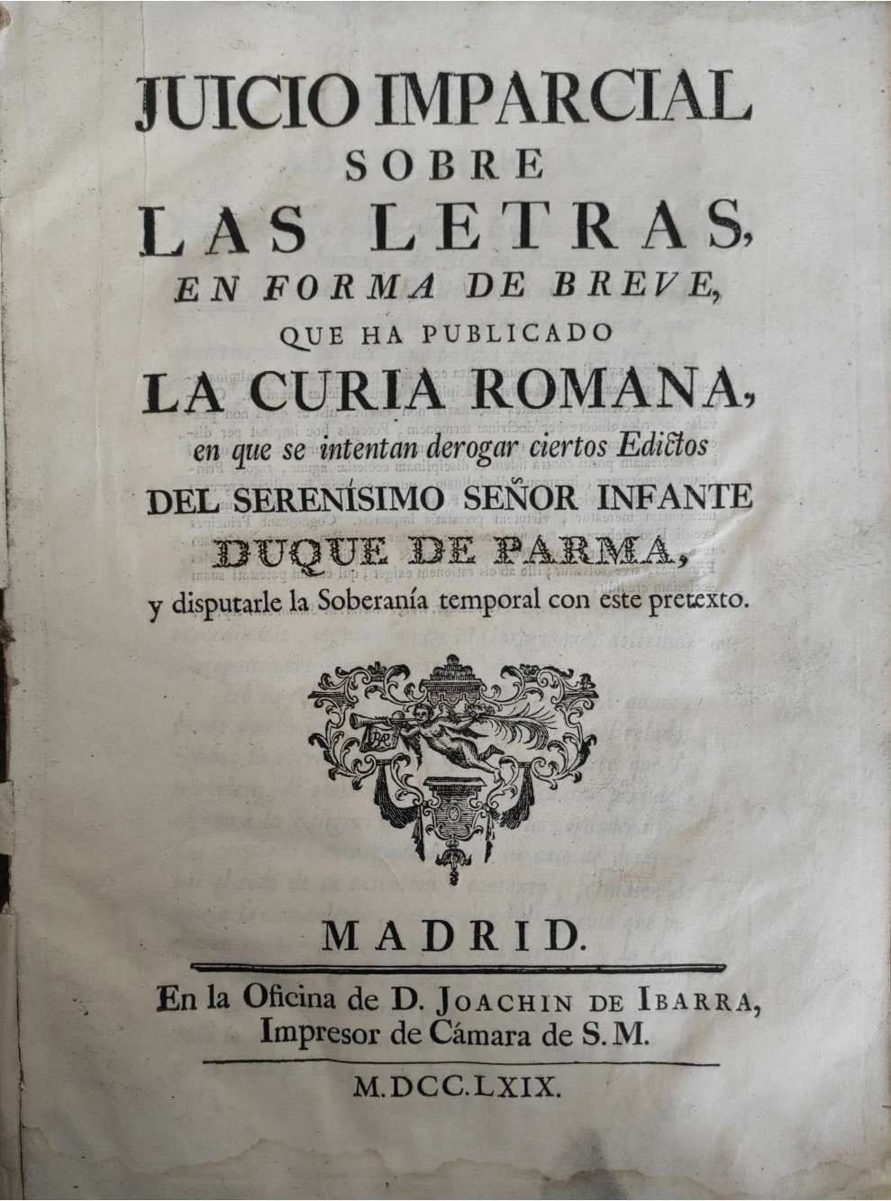 Título: Juicio imparcial sobre las letras, en forma de breve, que há publicado la Curia Romana en que se int...