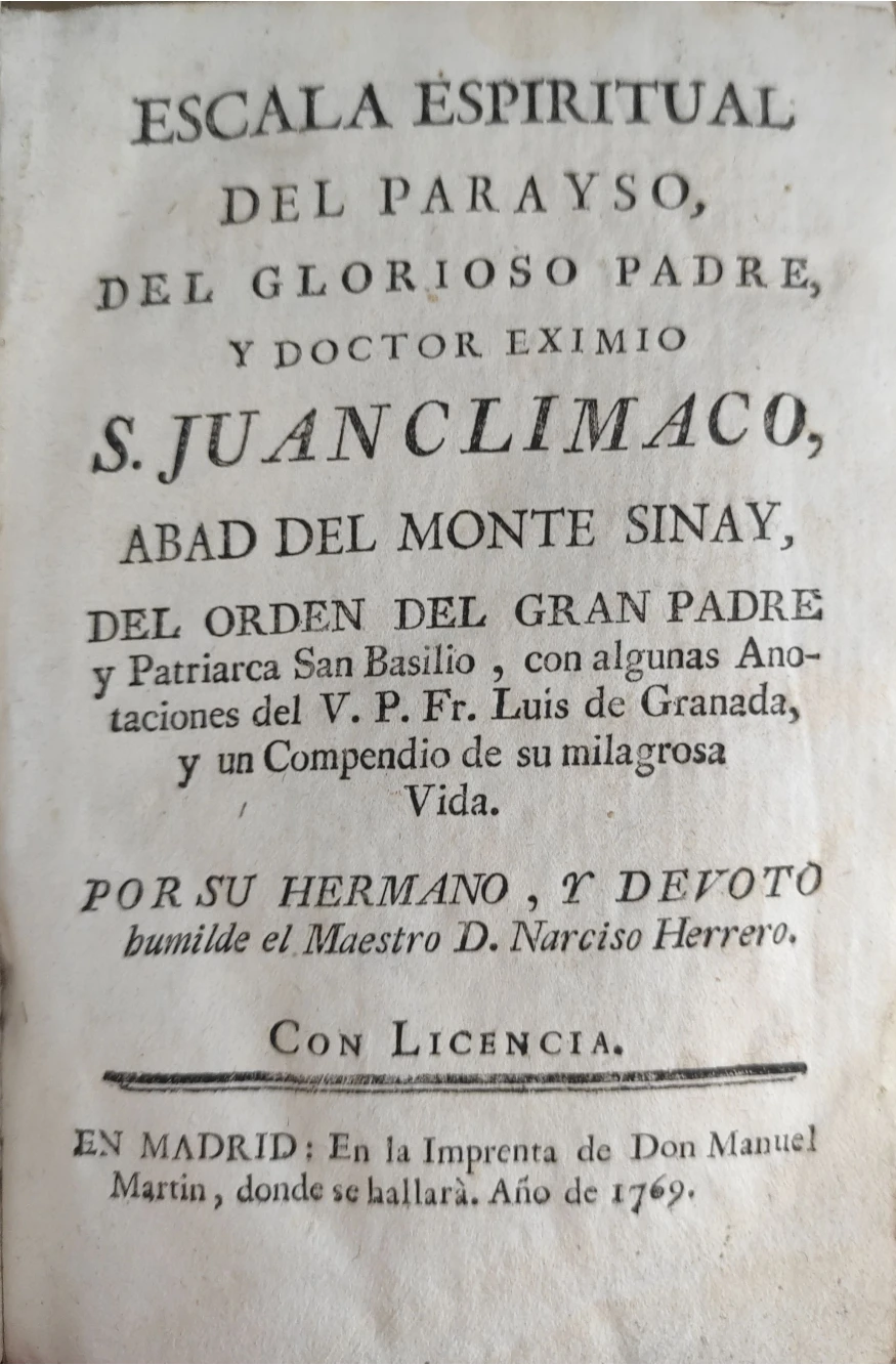 Título: Escala espiritual del Parayso, del glorioso Padre S. Juan Clímaco, Abad del Monte Sinay. Con algunas...