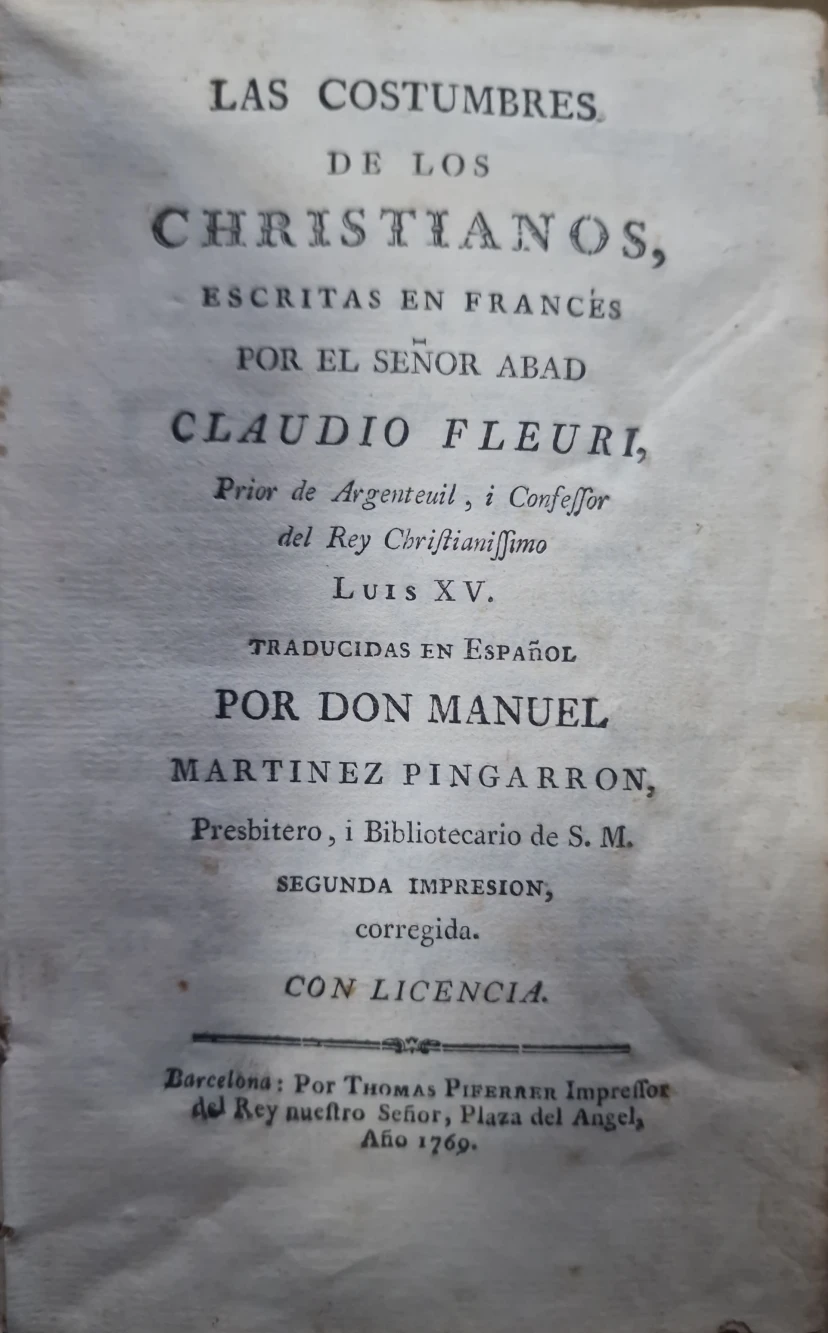 Autoría: Fleury, Claude (1640-1723) Martínez Pingarrón, Manuel (1710-1777) , traductor