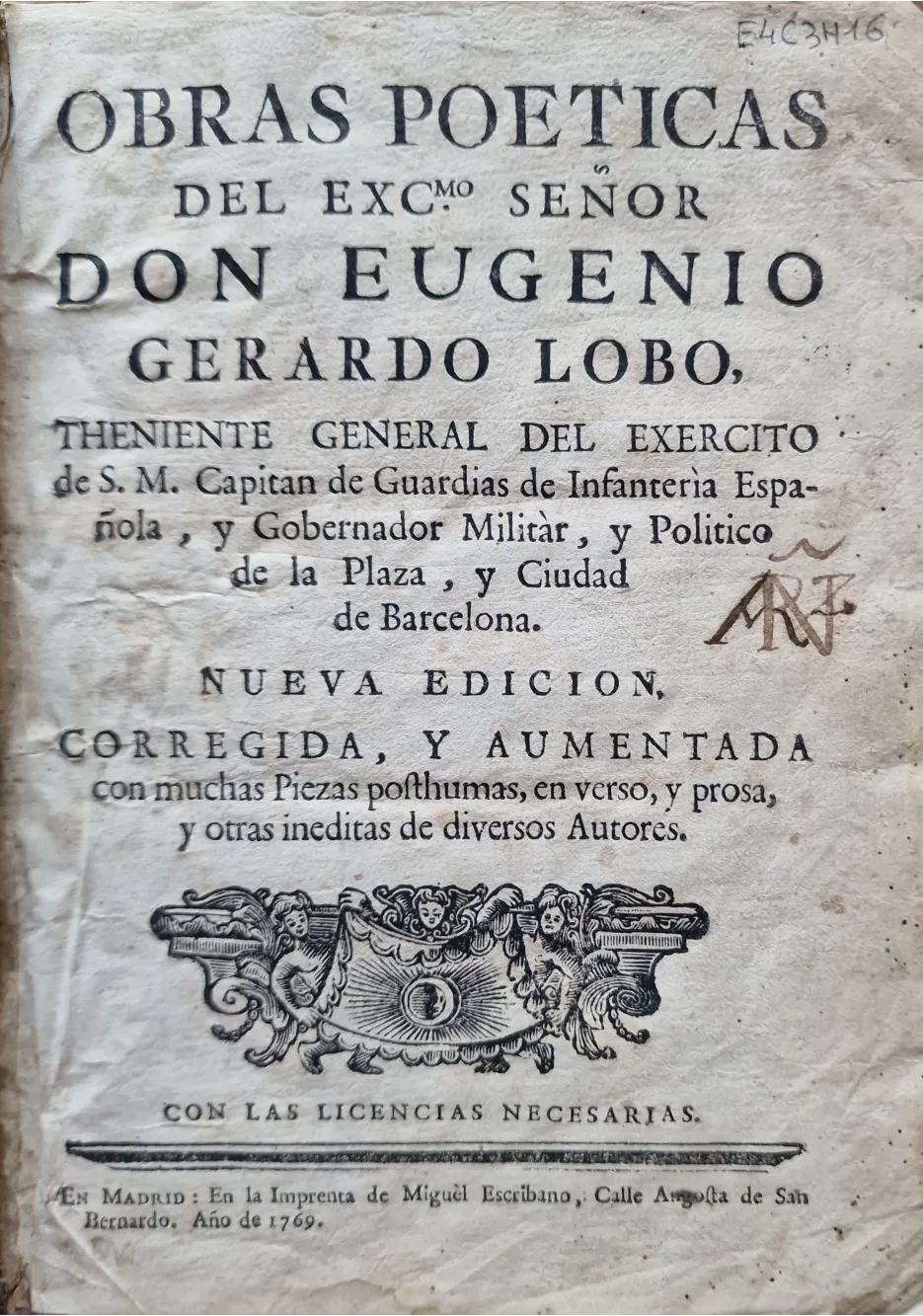 Título: Obras poeticas del Excmo. Señor Don Eugenio Gerardo Lobo