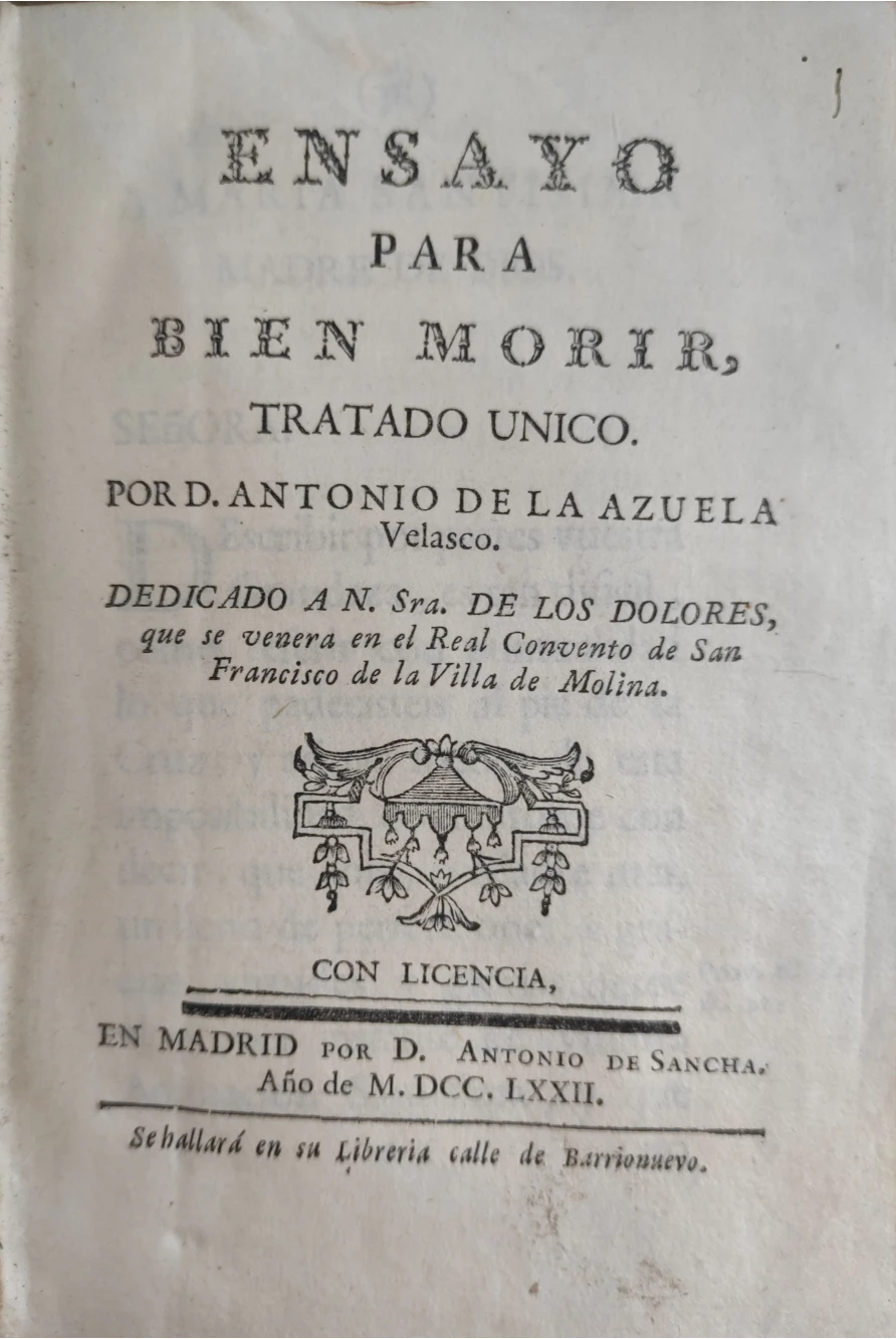 Título: Ensayo para bien morir, tratado unico. Por D. Antonio de la Azuela Velasco