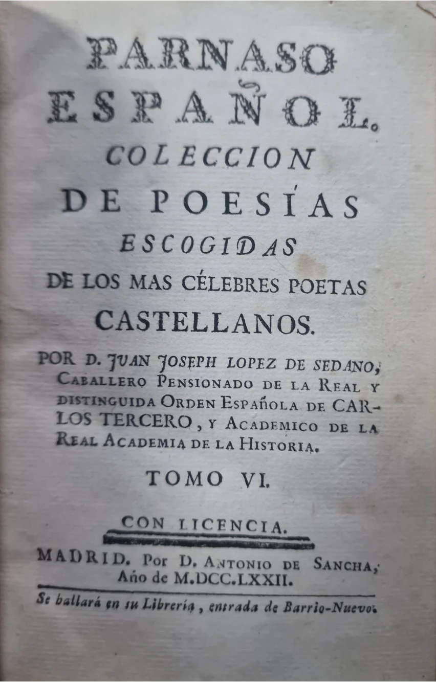 Título: Parnaso español : colección de poesías escogidas de los más célebres poetas castellanos. Tomo VI