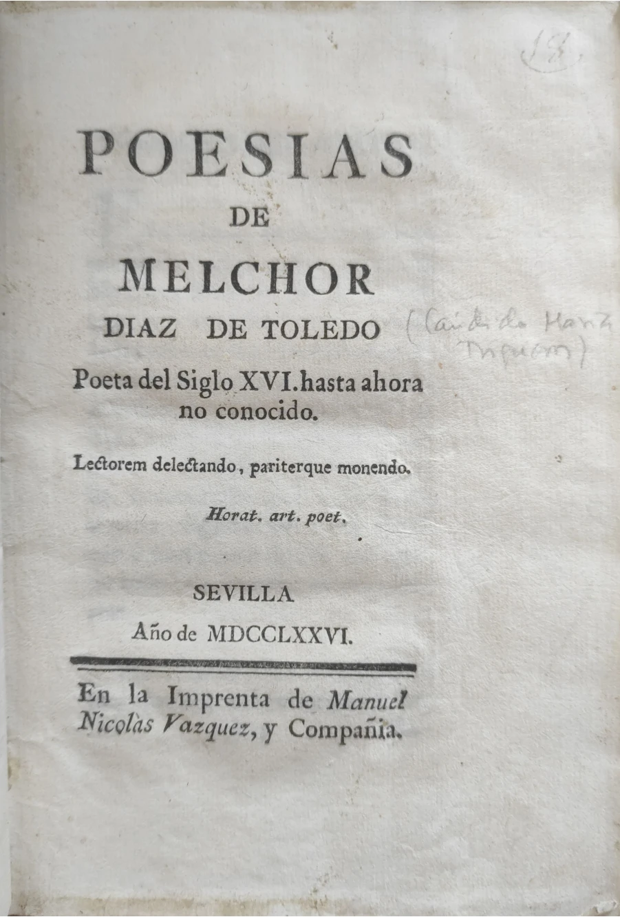 Título: Poesias de Melchor Diaz de Toledo, poeta del siglo XVI, hasta ahora no conocido
