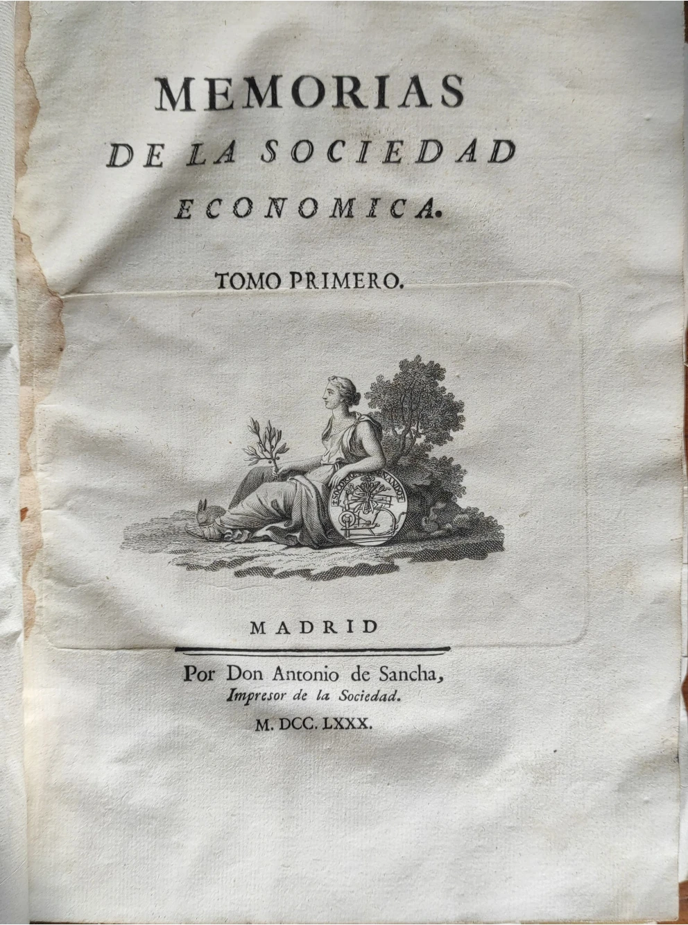 Título: Memorias de la Sociedad Económica. Tomo I