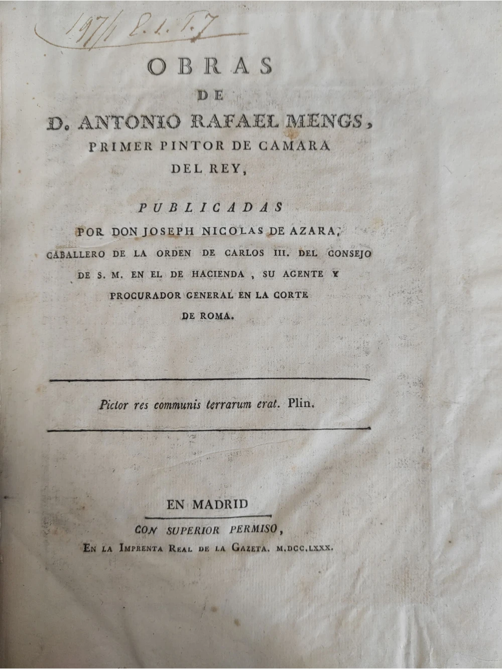 Título: Obras de D. Antonio Rafael Mengs, primer pintor de cámara del Rey