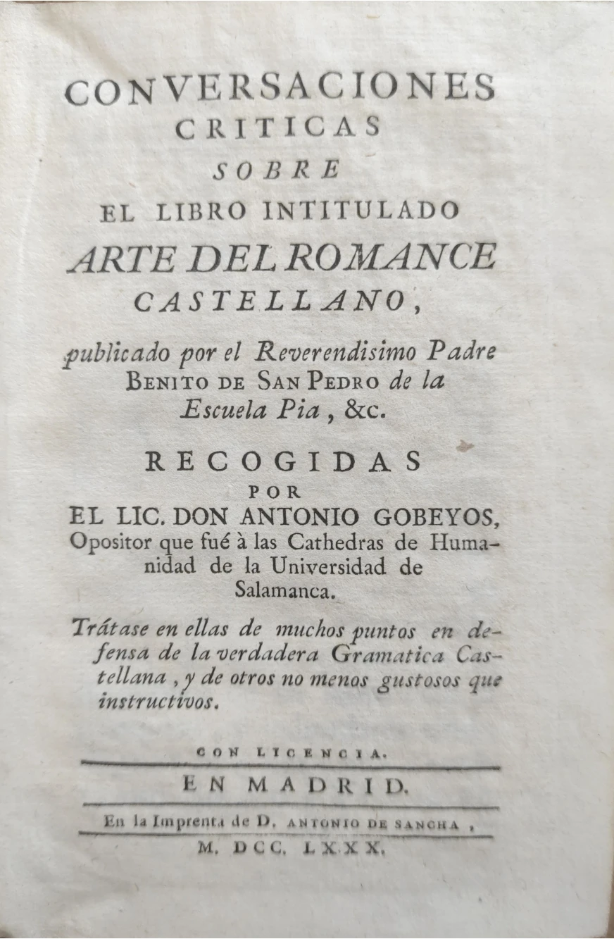 Título: Conversaciones criticas sobre el libro intitulado Arte del Romance Castellano