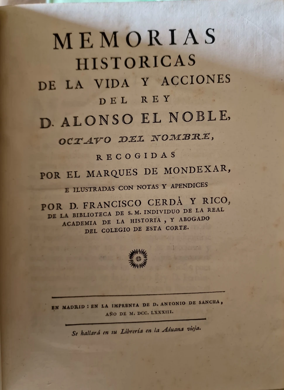 Título: Memorias historicas de la vida y acciones del rey D. Alonso el noble, octavo del nombre