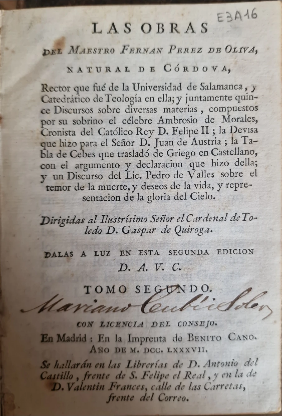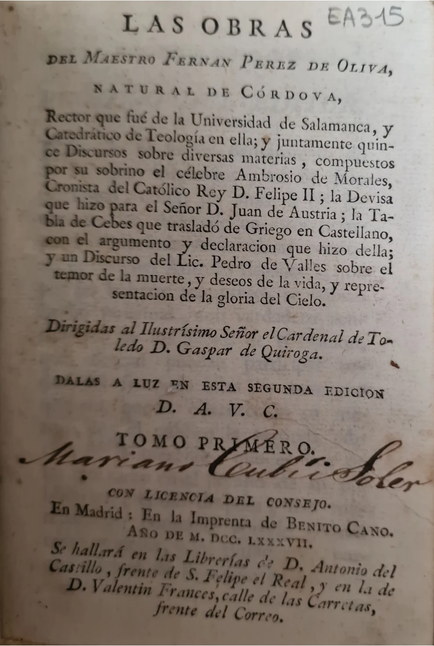 Autoría: Pérez de Oliva, Fernán (1494-1531)