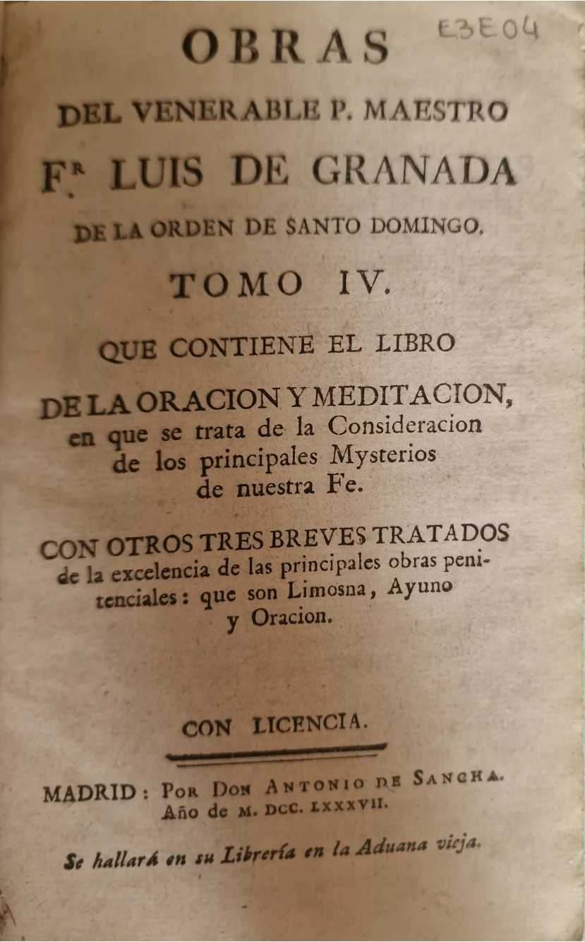 Título: Obras del venerable P. Maestro Fr. Luis de Granada de la Orden de Santo Domingo. Tomo Cuarto