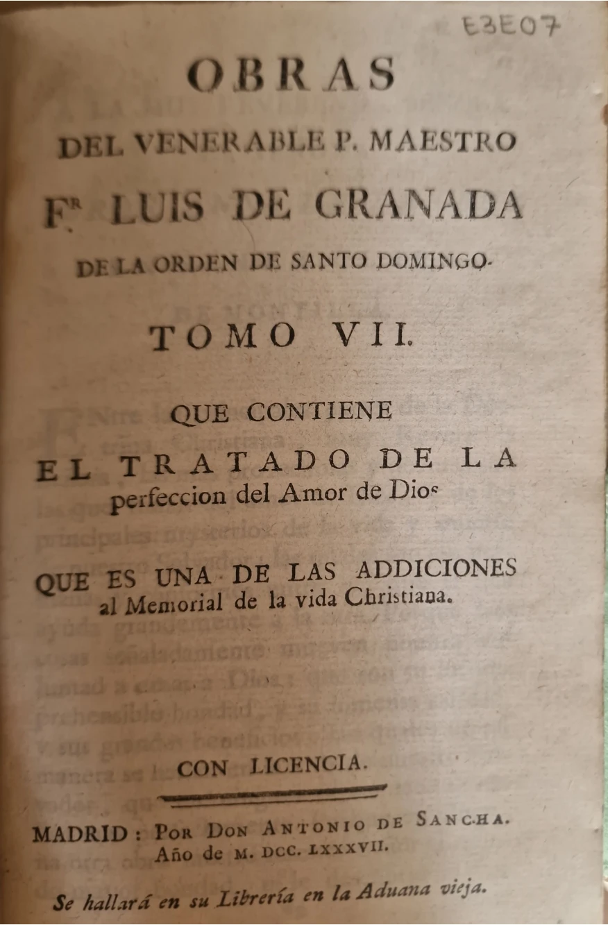 Título: Obras del venerable P. Maestro Fr. Luis de Granada de la Orden de Santo Domingo. Tomo Séptimo