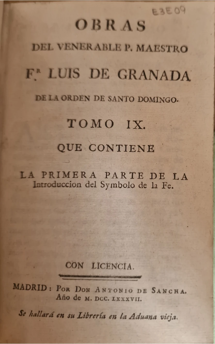 Título: Obras del venerable P. Maestro Fr. Luis de Granada de la Orden de Santo Domingo. Tomo Noveno