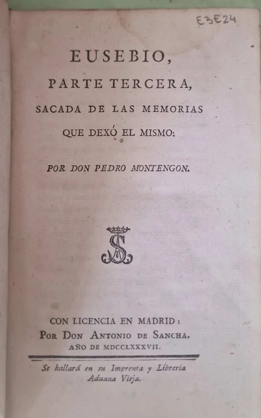 Título: Eusebio Parte Tercera sacada de las memorias que dexó el mismo. Por Don Pedro Montengón