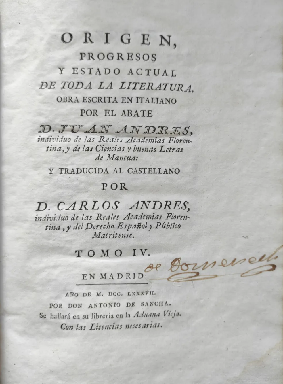 Título: Origen, progresos y estado actual de toda la literatura. Obra escrita en italiano por el abate D. Ju...