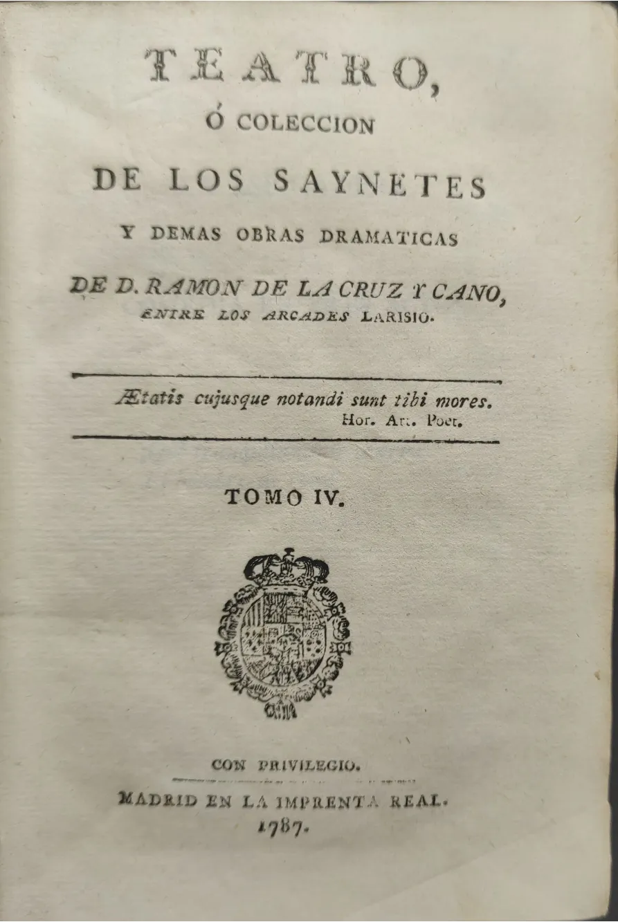 Título: Teatro, ó coleccion de los saynetes y demas obras dramaticas. De don Ramon de la Cruz y Cano, entre ...
