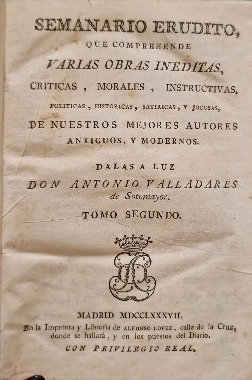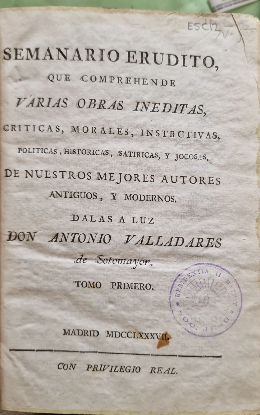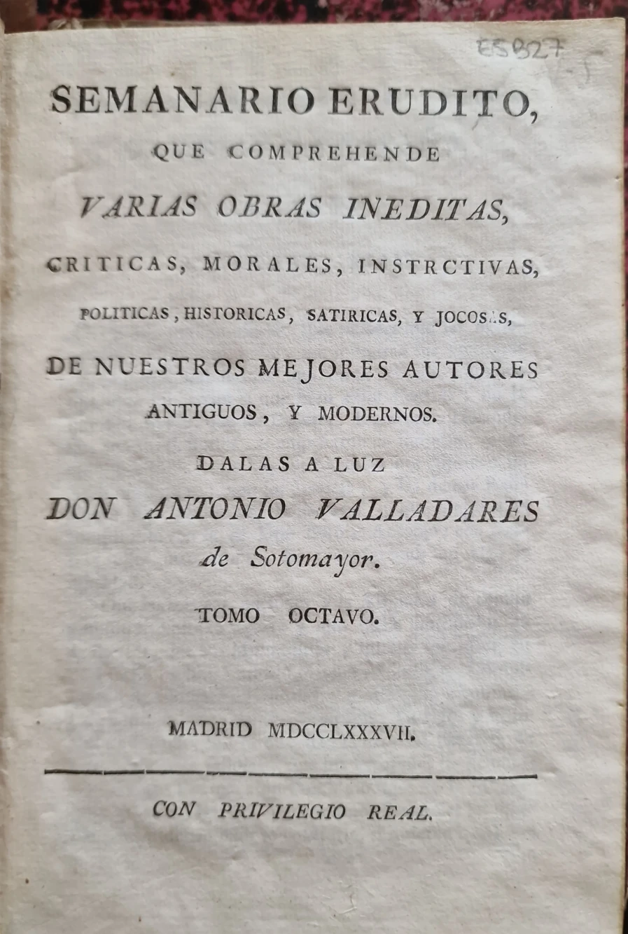 Título: Semanario erudito, que comprehende varias obras inéditas, críticas, morales, instructivas, políticas...