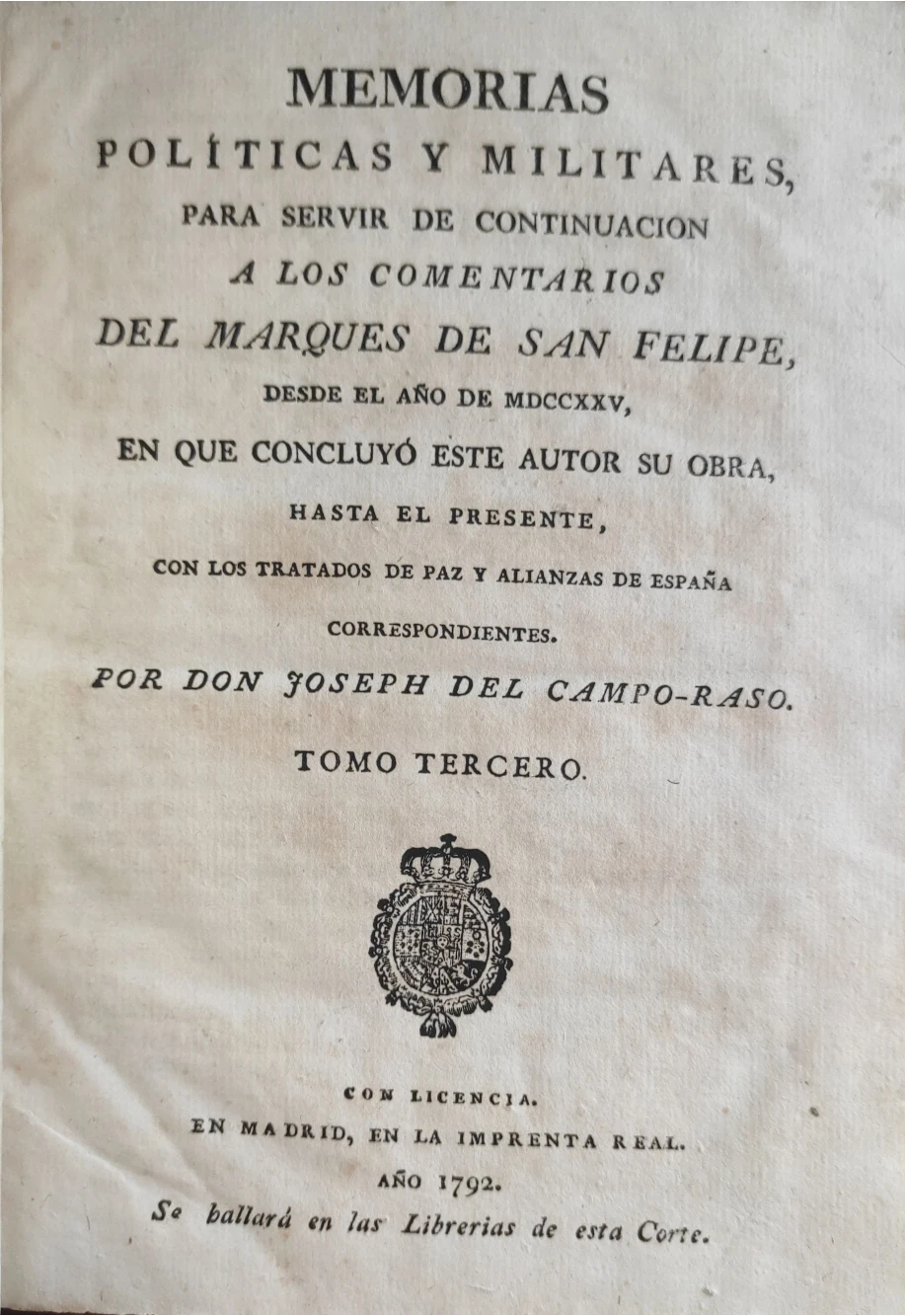 Título: Memorias políticas y militares para servir de continuacion á los comentarios del Marques de S. Felip...