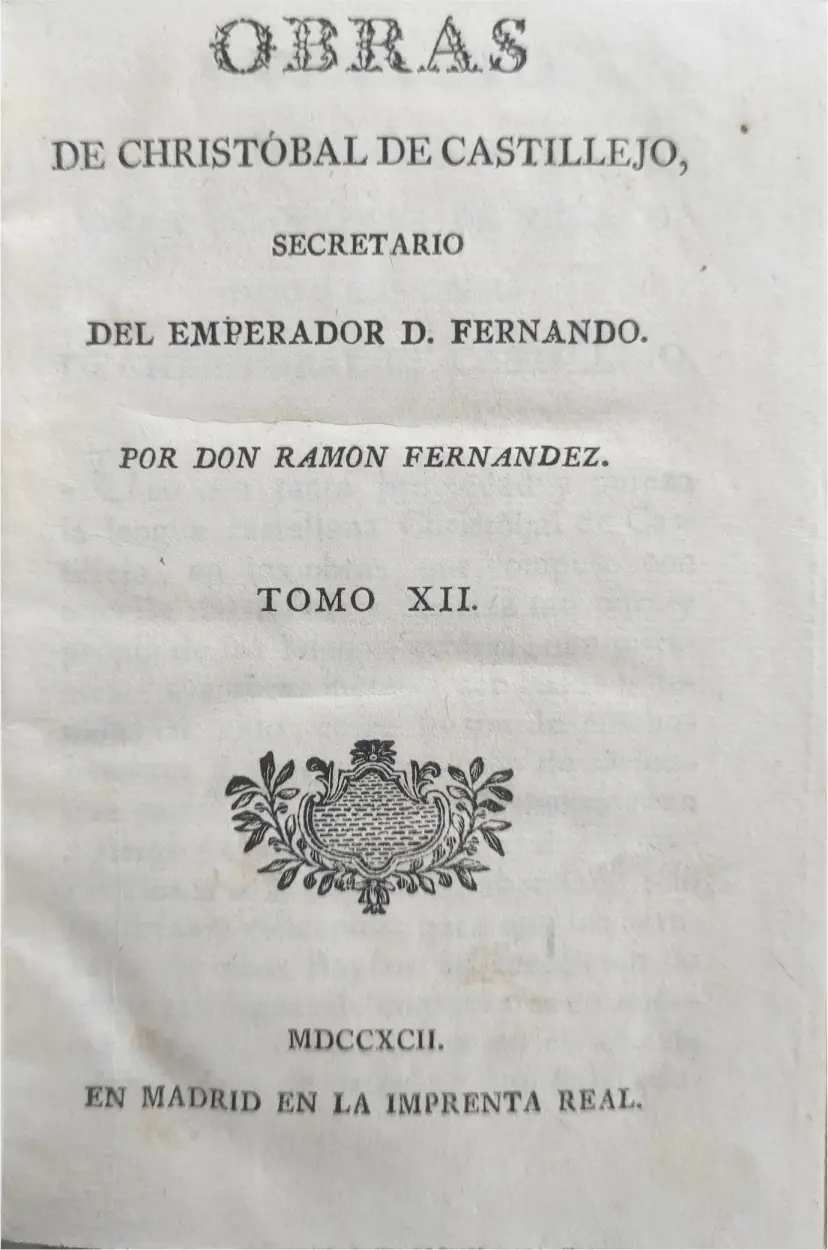 Título: Obras de Christóbal de Castillejo, secretario del Emperador D. Fernando, por don Ramon Fernández : t...