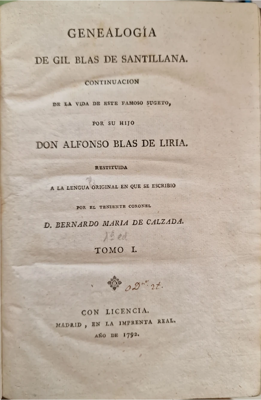 Título: Genealogía de Gil Blas de Santillana. Continuacion de la vida de este famoso sugeto, por su hijo don...
