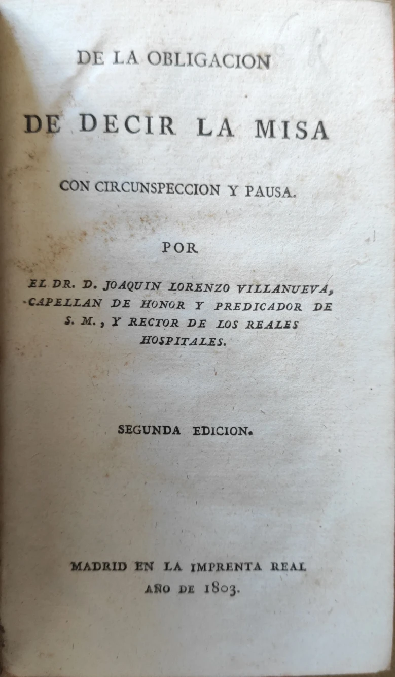Título: De la obligación de decir la Misa. Con circunspección y pausa.