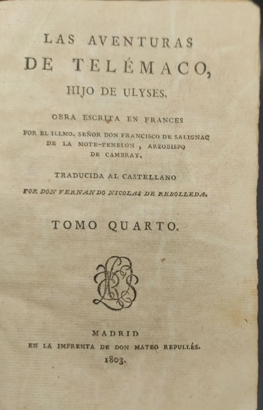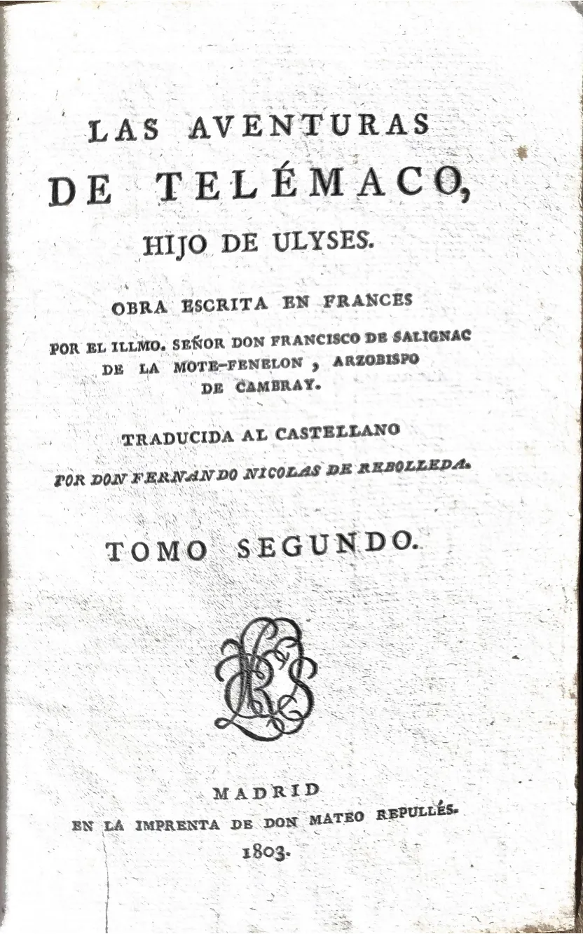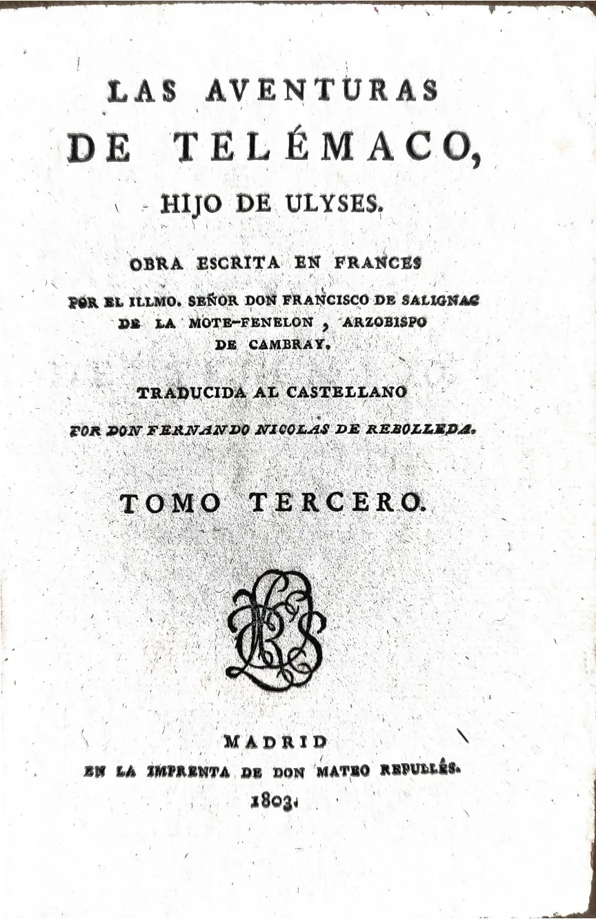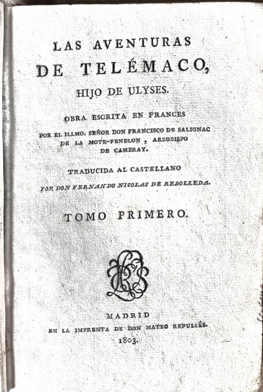 Título: Las aventuras de Telémaco, hijo de Ulyses. Obra escrita en francés por el illmo. Señor Don Francisco...