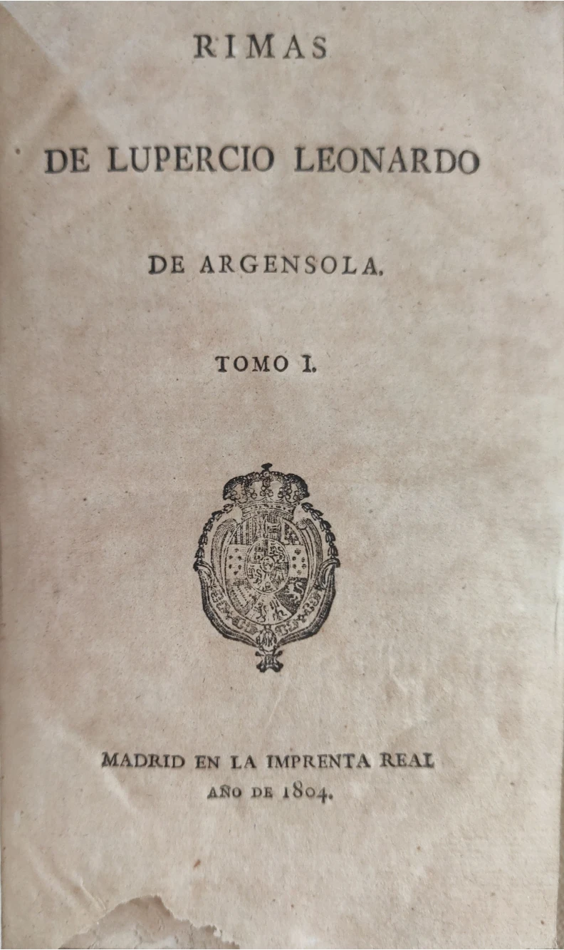 Título: Rimas de Lupercio Leonardo de Argensola : tomo I
