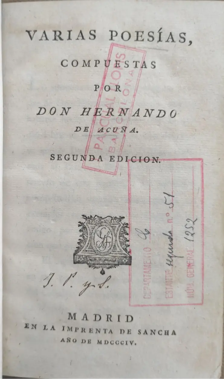 Título: Varias poesías, compuestas por Don Hernando de Acuña