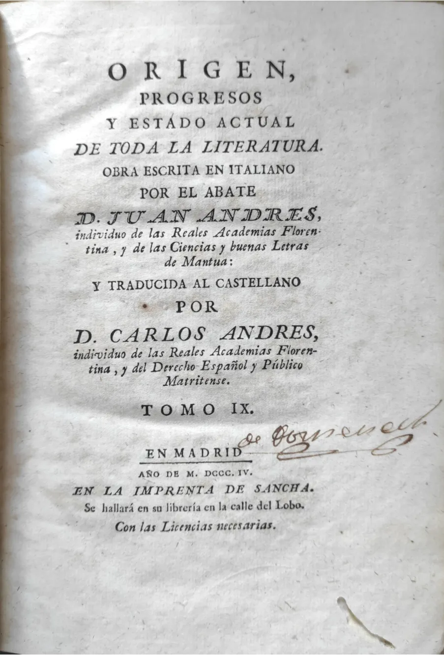 Título: Origen, progresos y estado actual de toda la literatura. Obra escrita en italiano por el abate D. Ju...