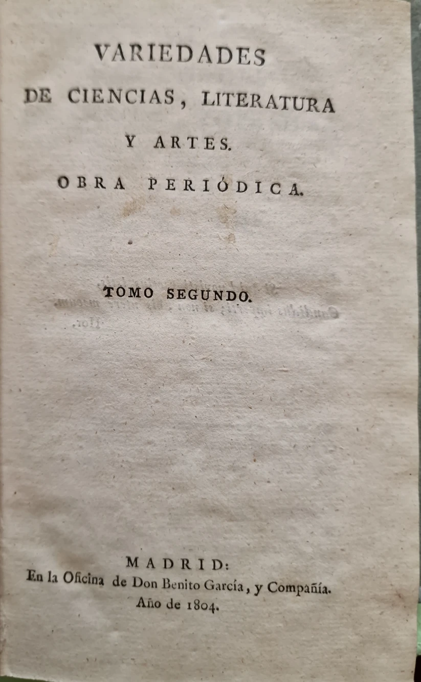 Título: Variedades de ciencias, literatura y artes. Tomo II