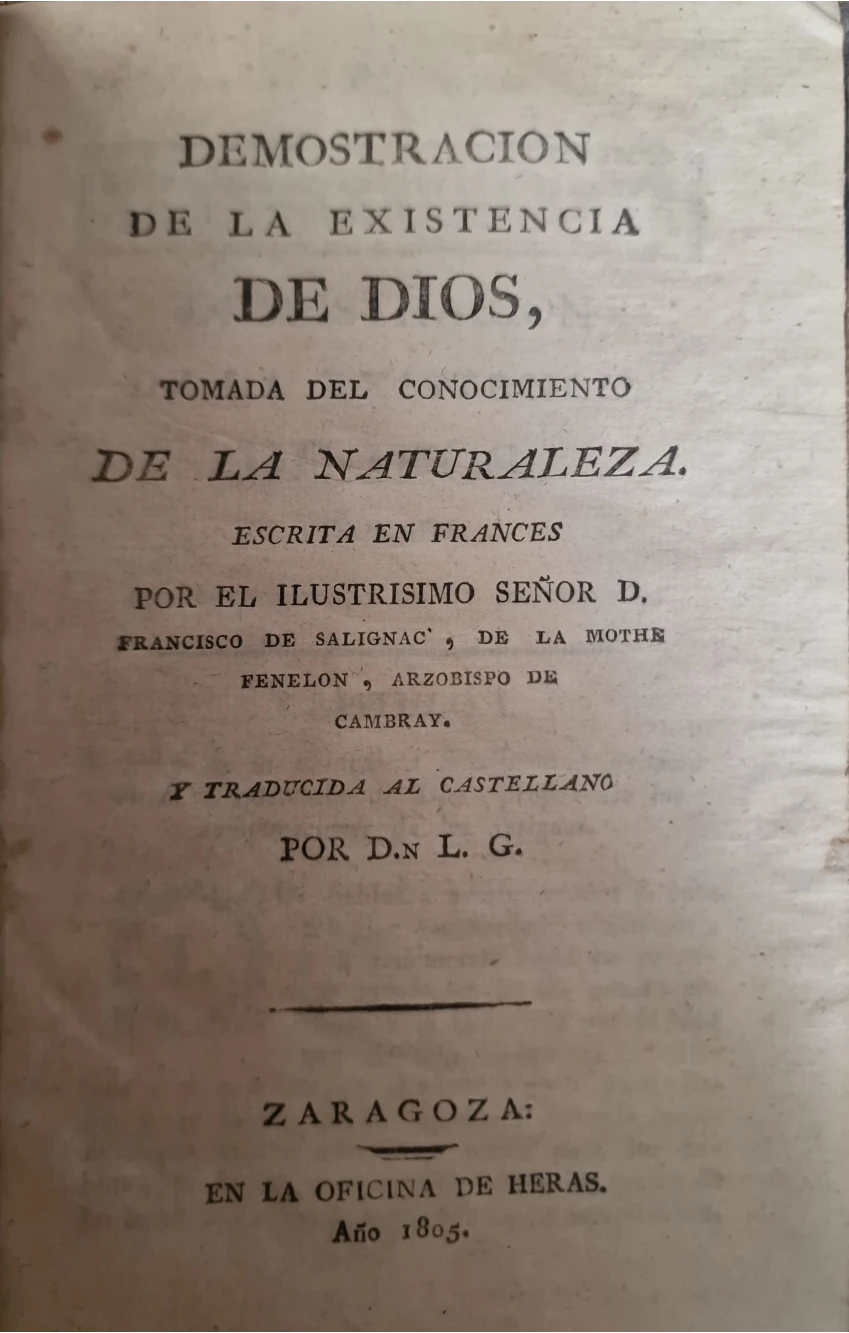 Título: Demostración de la existencia de Dios, tomada del conocimiento de la naturaleza.