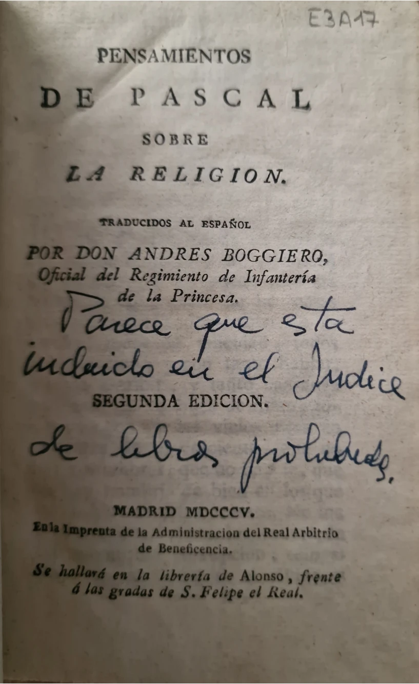 Título: Pensamientos de Pascal sobre la religión / traducidos al español por don Andres Boggiero