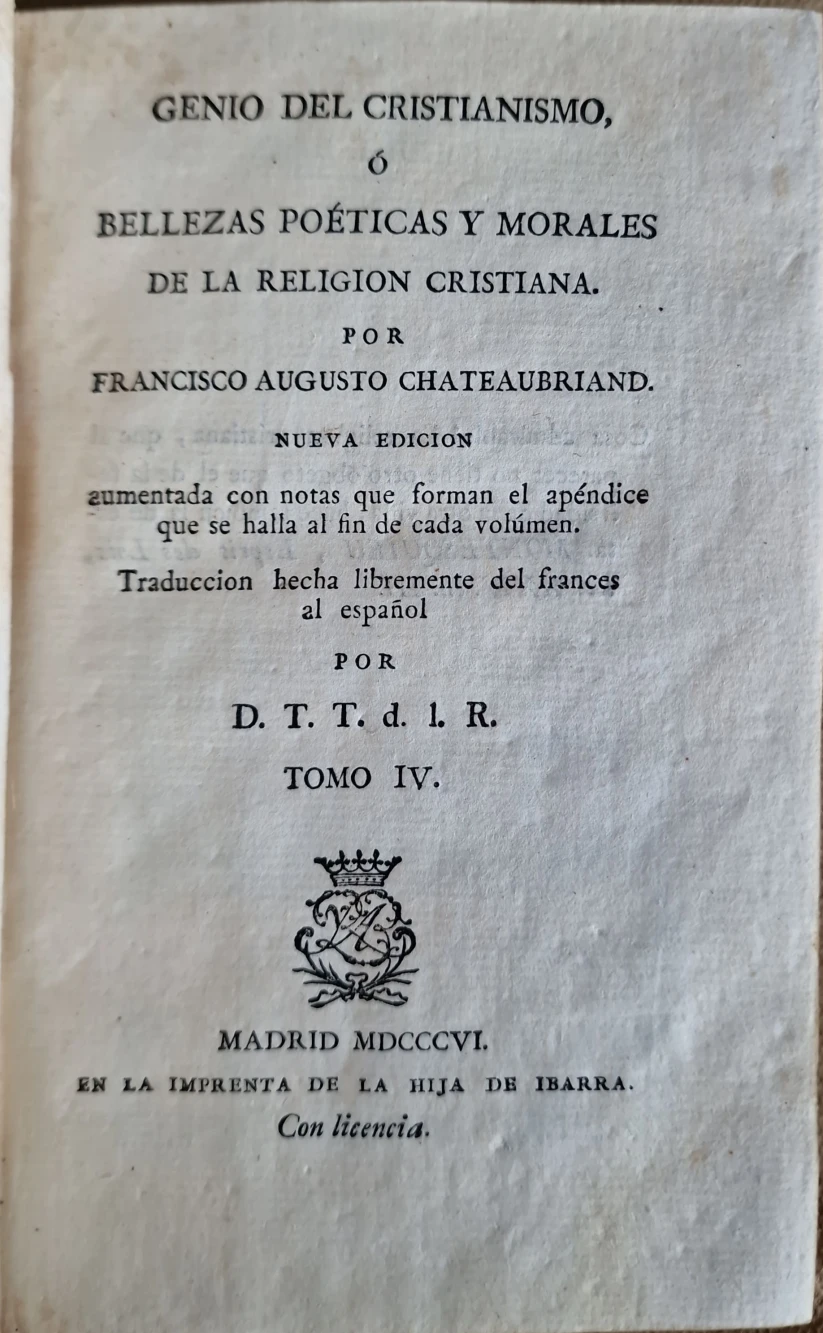 Título: Genio del Cristianismo o Bellezas Poéticas y MIVorales de la Religión Cristiana. Tomo IV