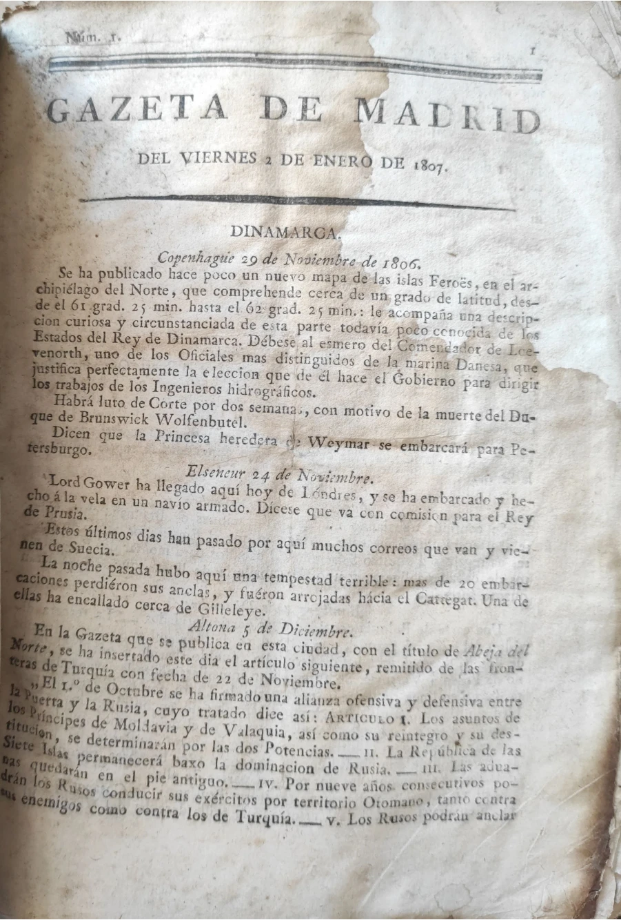 Título: Gazeta de Madrid del viernes 2 de enero de 1807. Núm. 1