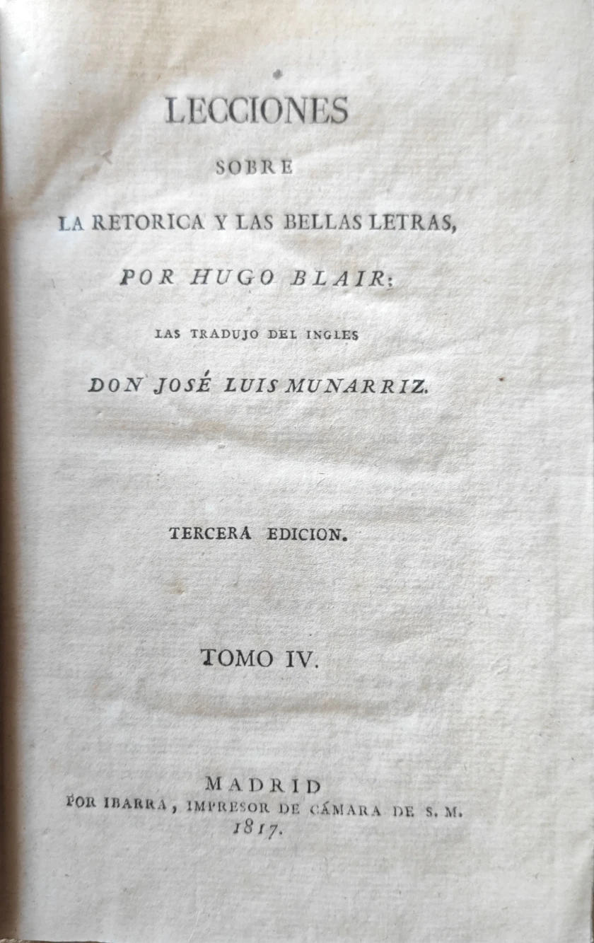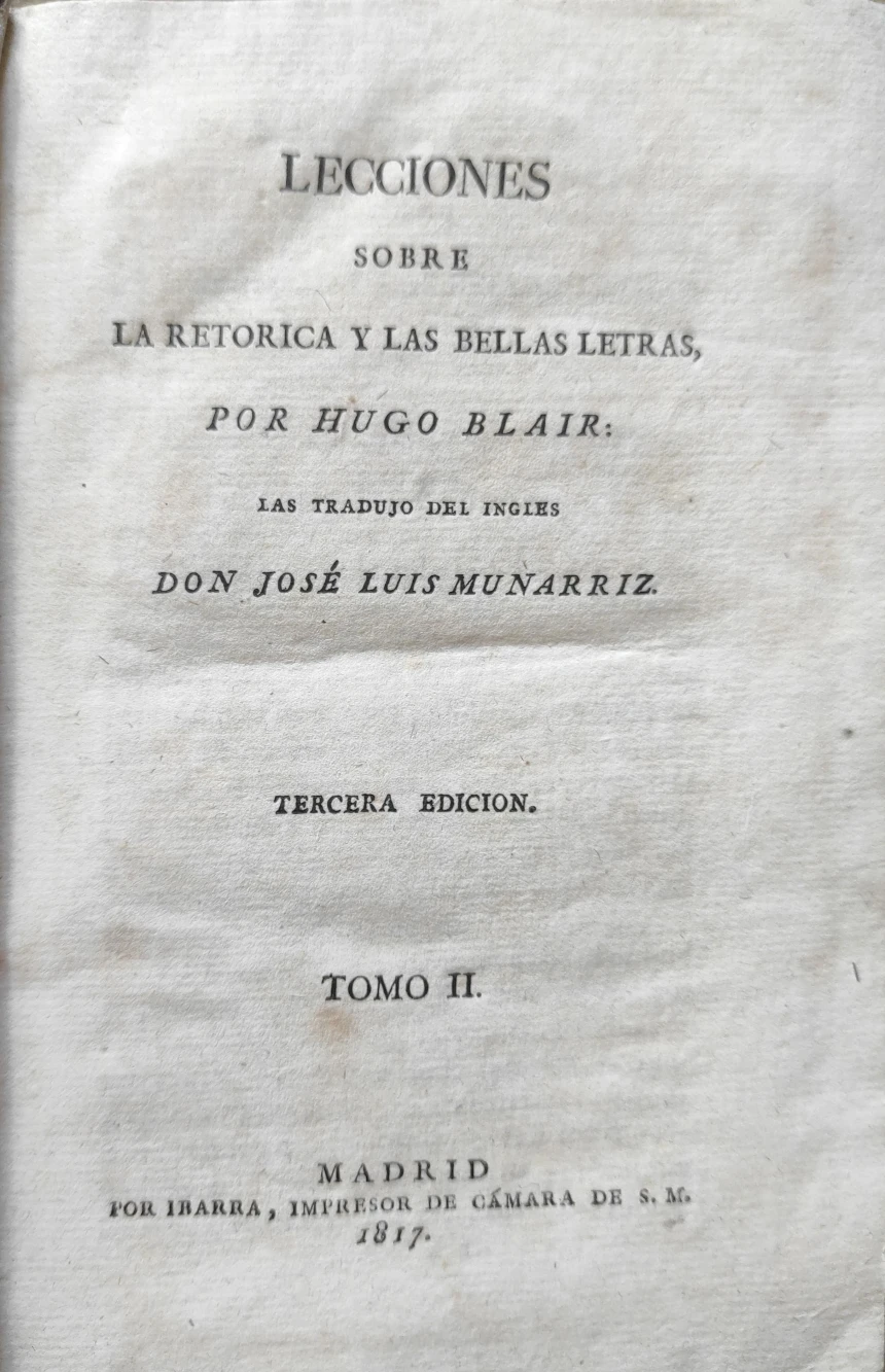 Título: Lecciones sobre la retórica y las bellas letras, por Hugo Blair. Traducido del inglés por José Luis ...