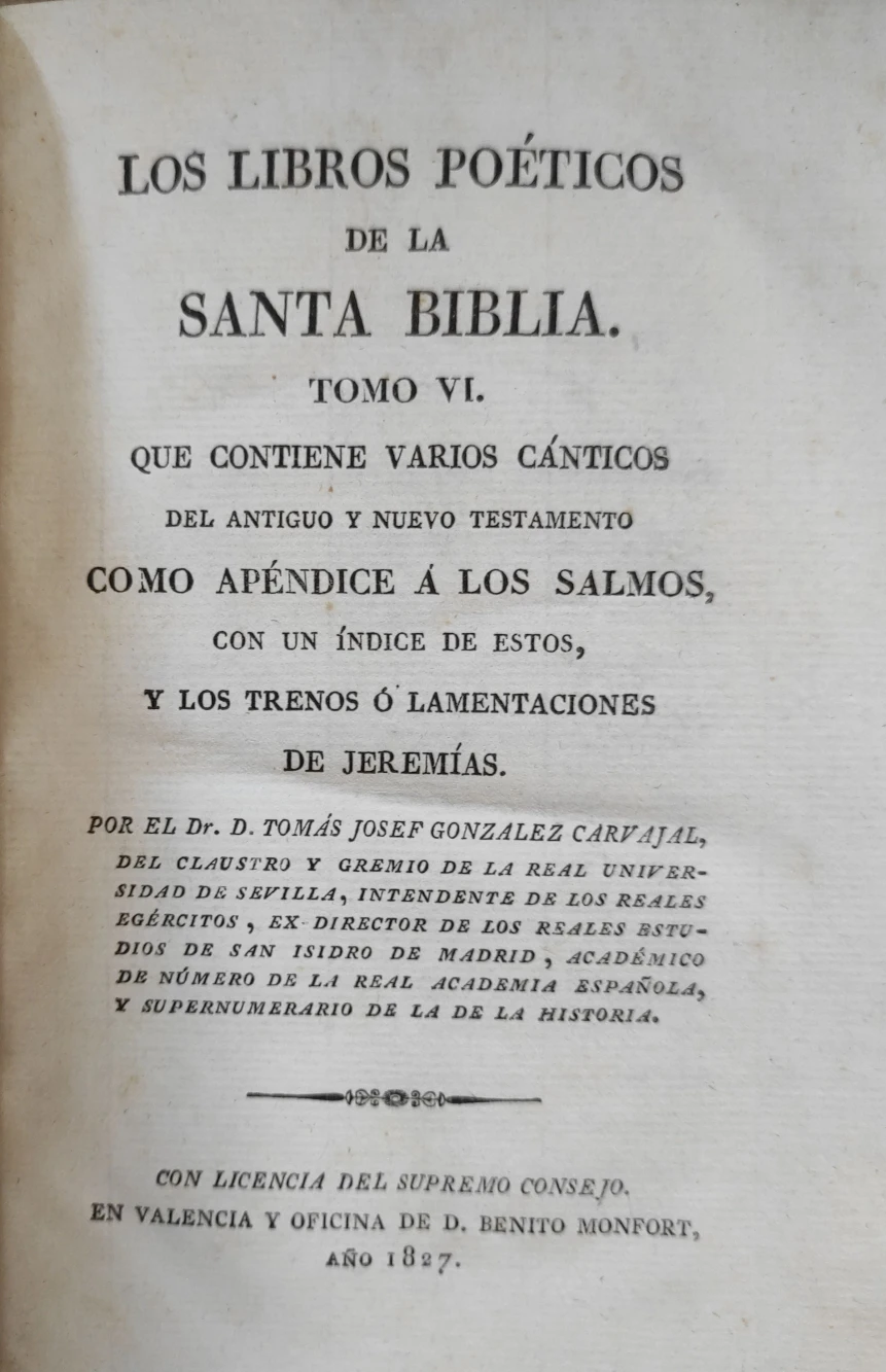 Título: Los libros poéticos de la Santa Biblia. Tomo VI, que contiene varios Cánticos del antiguo y nuevo te...